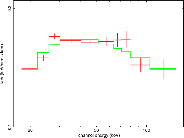 For JEM-X, spectra were extracted from the mosaic images, since this procedure is more reliable for faint sources than the standard spectral extraction in OSA 7.