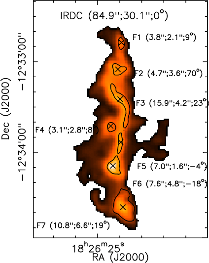 Table 1: Properties of the first 30 out of the 11303 in the Spitzer dark cloud (SDC) catalogue. The full catalogue is available at the CDS.
