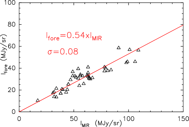 the three last bands observed by Spitzer/IRAC, the extinction is a