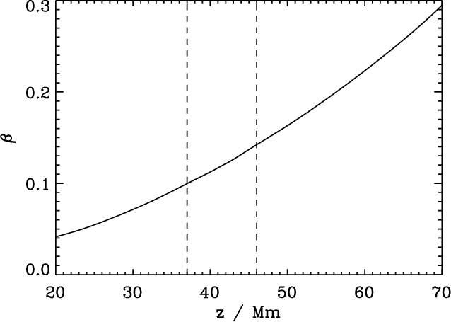 (the ratio of thermal and magnetic pressures) to avoid ponderomotive effects (Terradas & Ofman 2004). Figure 4 shows the plasma