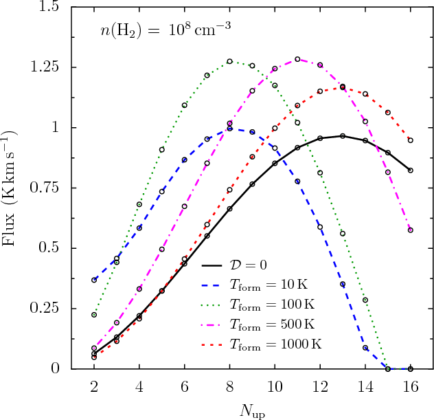 ) will be scarcely populated when excited upon formation. Transitions from these levels will therefore have low line fluxes and may not be detectable (Sect. 3.3.1).