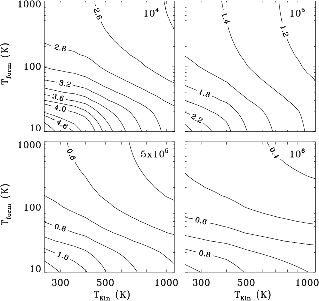 800 K and a formation temperature between 10-70 K.