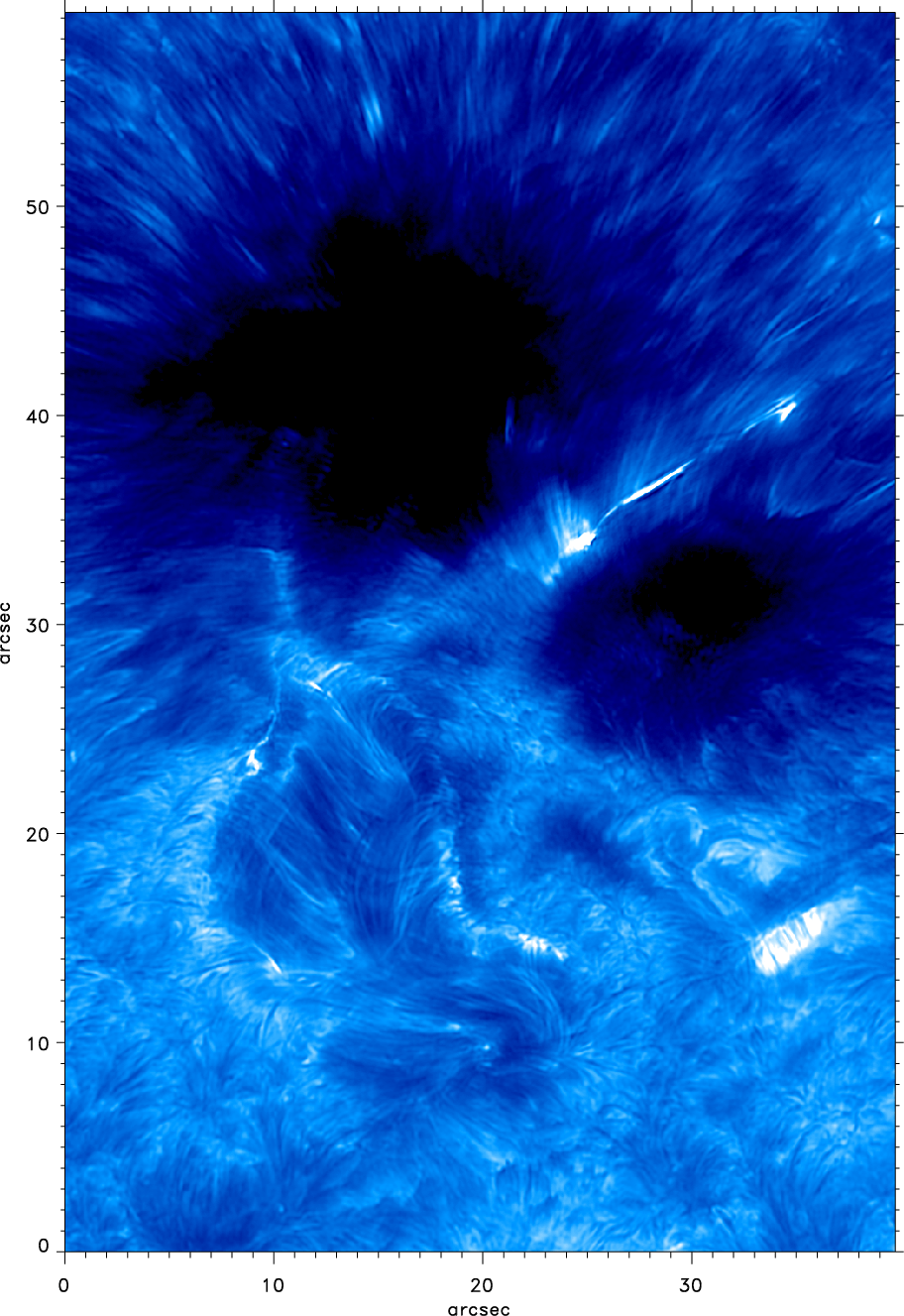 border. The underlying photosphere shows a disturbed penumbral