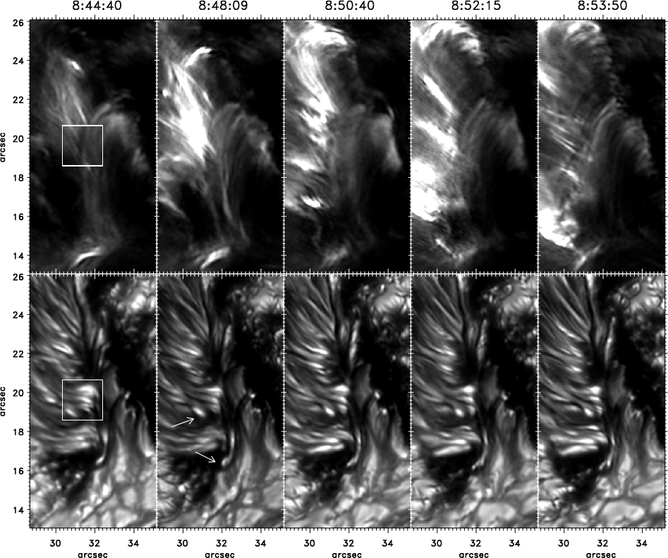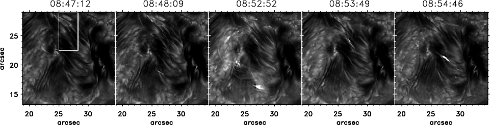 the Ca II H line-wing image marks the subregion shown in
