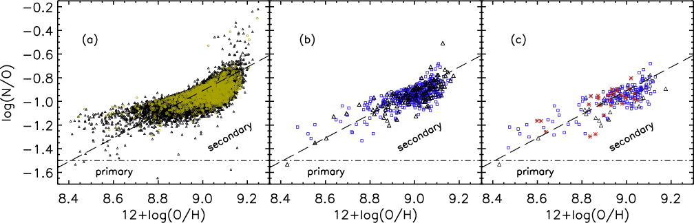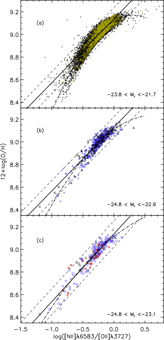 3727 ratio is lost because nitrogen (like oxygen) is predominantly a primary nucleosynthesis element in this metallicity range (Kewley & Dopita 2002).