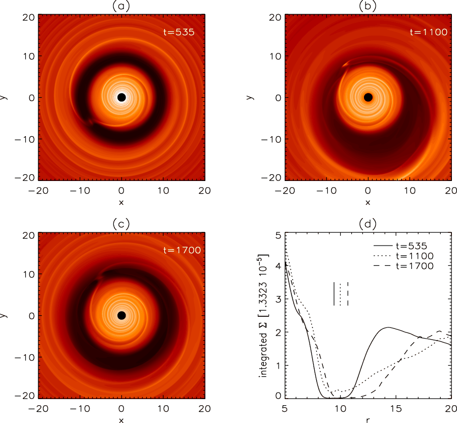 of the embedded giant planet occur. This is because