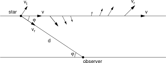 Even if a star moves undisturbed with a constant space velocity v, it can show a change in its radial velocity (RV). This secular or perspective acceleration was first measured by Kürster et al. (2003) for Barnard's star. In polar coordinates the radial and tangential velocity component, respectively, are (Fig. 3)