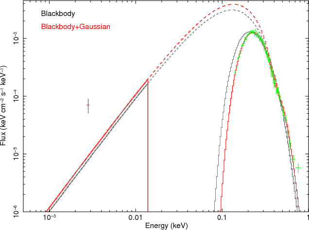 350 pc, might rather point towards a non-thermal origin for the optical emission, as proposed for RBS1774 (Zane et al. 2008). Actually, as Fig. 4 shows, unphysically large radii are required even if the actual counterpart is dimmer,