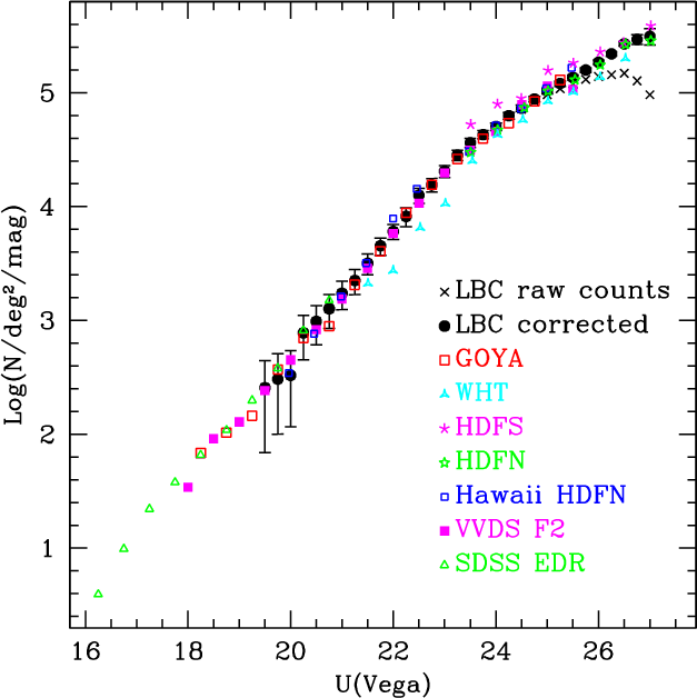 To probe the statistical properties of the faint galaxy population and reduce the biases due to the cosmic variance, a major imaging campaign should be performed over large areas with efficient multicolour imagers at 8 m class telescopes. This is especially true in the near-UV band (hereafter UV), where instrumentation is in general less efficient but where it is possible to extract information about the star formation activity and dust absorption present in distant galaxies.