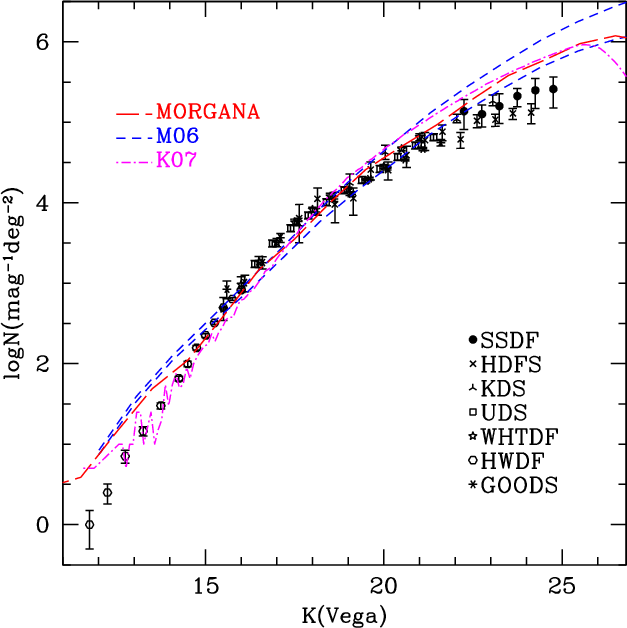 - The AGN feedback (radio versus QSO mode) may affect galaxy counts at the bright end of the log N-log S in the K band.