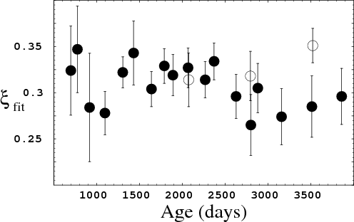 results beyond day 1500 are caused by physical effects, perhaps also