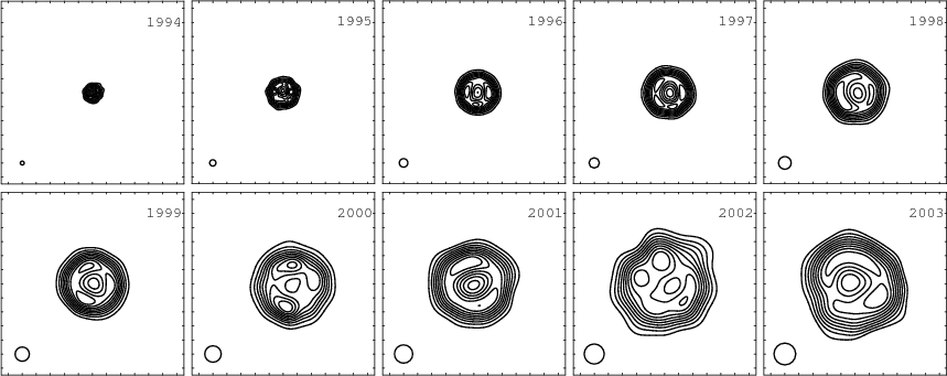 - Color maps can be found in the following web page: http://www.uv.es/radioastronomia/SN1993J-10yr-AA09.jpg.