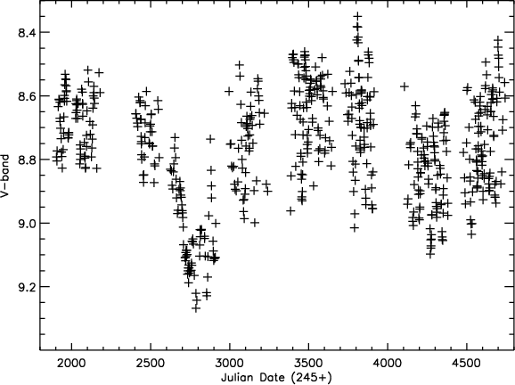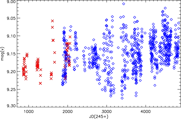 We complemented our own observations with the V-band data available from the All Sky Automated Survey (Pojmanski 2002). These data were obtained with the ASAS-3 configuration using the wide field (8.8