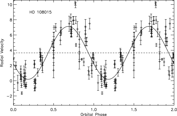 table we list P as the orbital period in days, K as the velocity amplitude, e as the eccentricity, as the angle in the orbital plane between the direction to the ascending node and the direction to the periastron, T0 as the time of periastron passage,