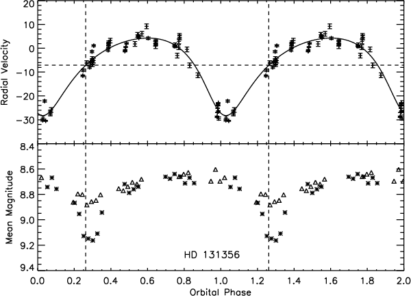 In this paper, we restricted ourselves to the stars in our radial velocity programme with spectral type F, five in total, which exhibit only small amplitude photometric variability with a peak-to-peak amplitude of up to 0.25 mag in the V-band and are accessible from the southern hemisphere. In addition, we included HD 131356 (EN TrA), which was recognised to be of RV Tauri type by Pel (1976) and found to have a large excess in L by Lloyd Evans (1985), despite the higher peak-to-peak pulsational amplitude. The main reason for its inclusion is that, because of the longer time baseline of our velocity monitoring, we were able to confirm the binary nature of the star and update the period estimate of Van Winckel et al. (1999). It shares the early F spectral type of the other stars discussed here, and in the 2001/2 season, its V amplitude was only 0.3 mag.