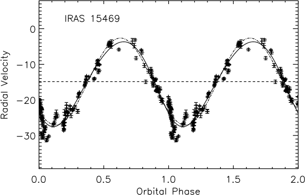 Conclusions. These results corroborate our earlier statement that evolved objects in binary stars create a Keplerian dusty circumbinary disc. With the measured orbits and mass functions, we conclude that the circumbinary discs seem to have a major impact on the evolution of a significant fraction of binary systems.