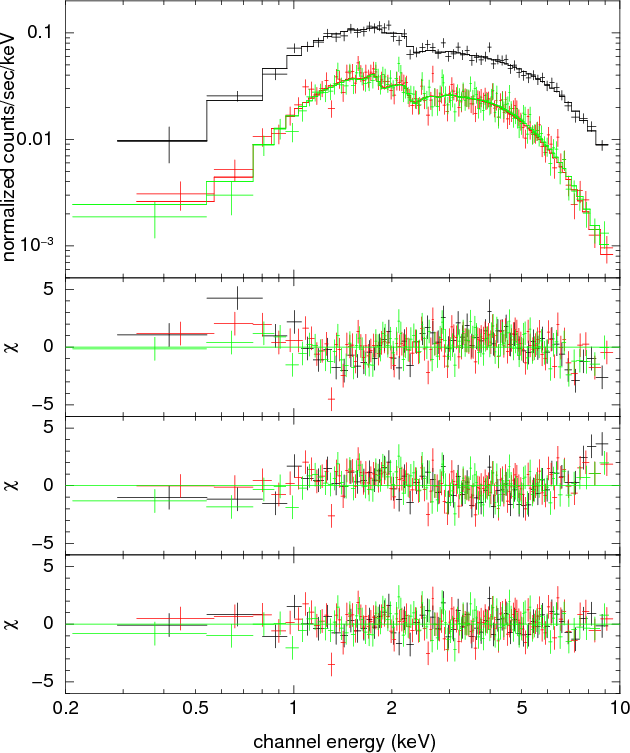 /d.o.f. = 1.30/277. On the other hand, using an absorbed blackbody (BB) model, we obtained a hydrogen column density