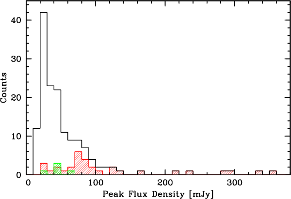 is the rms noise level. The median error over all defined flux densities is 0.65 Jy.