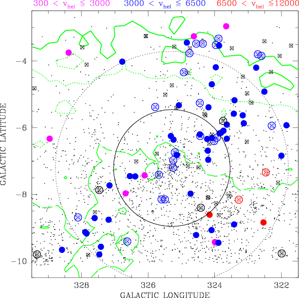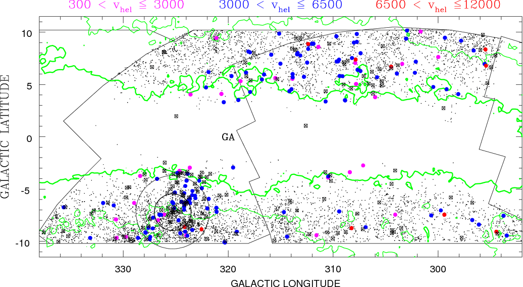 A number of galaxies outside of the Crux and GA region were also observed within this observing programme, i.e., galaxies in the Vela region (