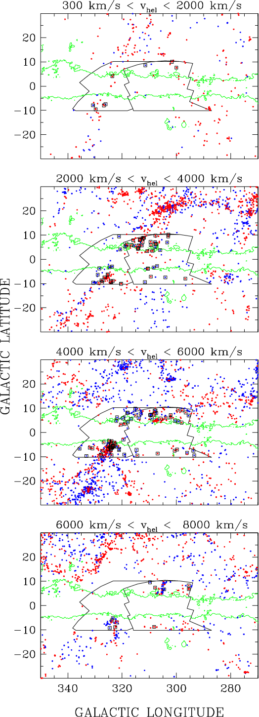 Kraan-Korteweg & Lahav 2000, for preliminary results) that covers the region between Puppis (Saito et al. 1991) and the Hydra/Antlia region (Kraan-Korteweg 2000); see Figs. 2 and 3 in Kraan-Korteweg & Lahav 2000, for an outline of the surveyed area and the distribution of the uncovered galaxies.