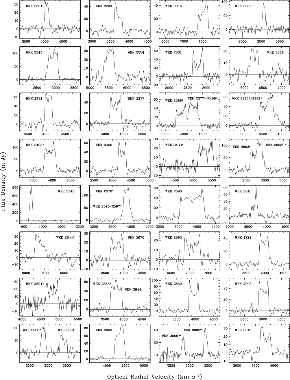 for the velocity range -1200 to 12 700 km s-1, with a sensitivity similar to the observations presented here. A subsample of this work consists of the