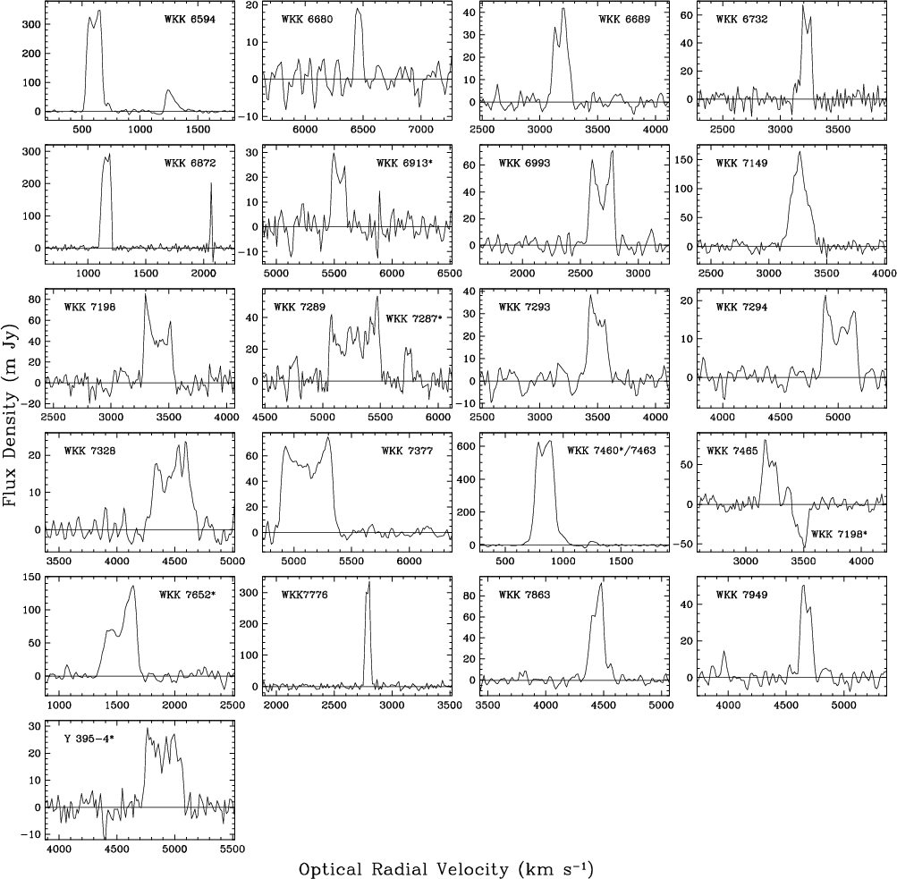 km s-1. All the parameters are uncertain since the low-velocity end of WKK 5993 is undetermined. For the WKK 5999 profile we have measured v=3261 km s-1,