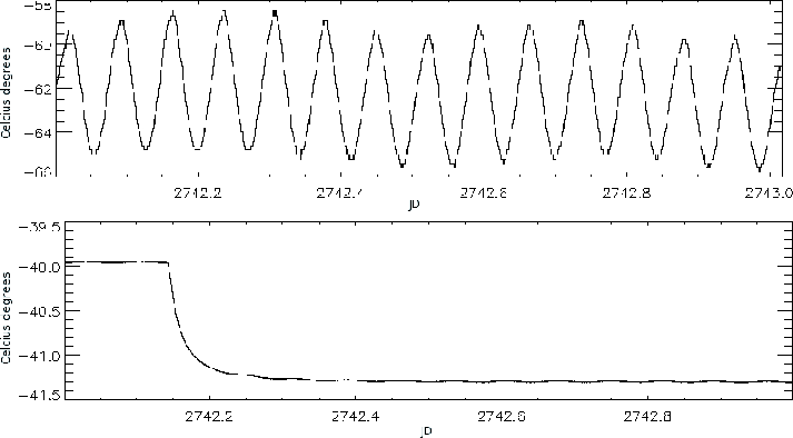 - The temperature stability on short time scales is always better than the specified performances. On the CCDs the stability specification for the orbital variations was 0.03 degree, and the actual stability is better than 0.01.