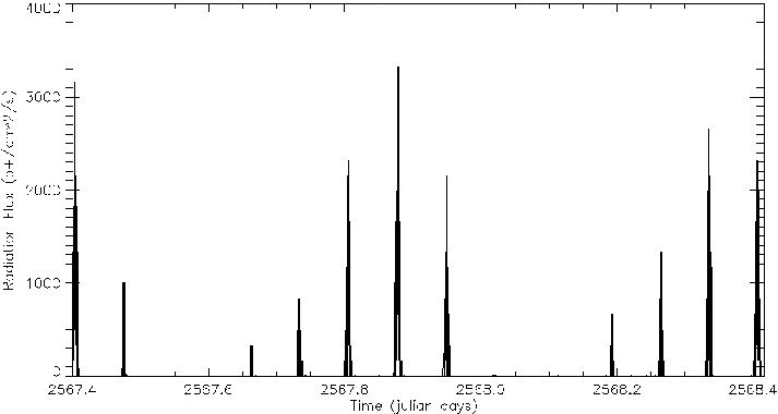 Figure 3: Temporal evolution of the proton flux at the CoRoT altitude. |