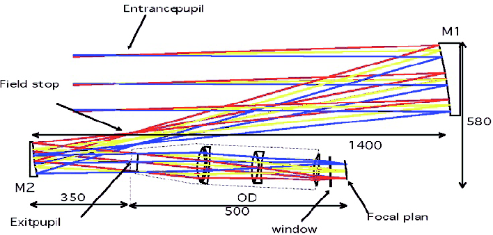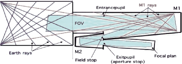 The optical architecture was driven by the need to minimise straylight coming from the Earth and to provide an FoV of