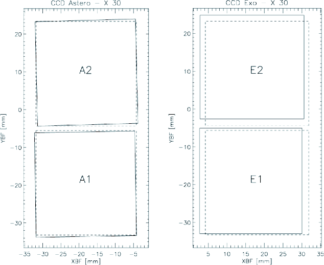With this collecting surface targets with V magnitudes between 5.4 and 9.2 on the AS CCDs and with R magnitudes between 11.5 and 16 on PF CCDs can be observed with a reasonable S/N and without saturation of the detectors.
