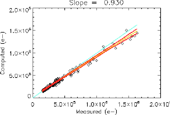 Figure 28: Crosses: measured rms. Red triangles: photons noise level. |