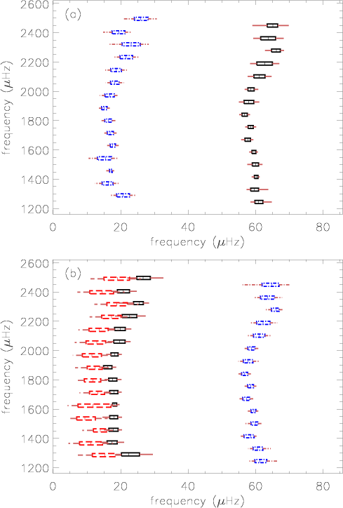 Vl=2=0.5. However, for the analysis, the relative heights are not fixed, unlike previous approaches (Benomar 2008; Appourchaux et al. 2008).