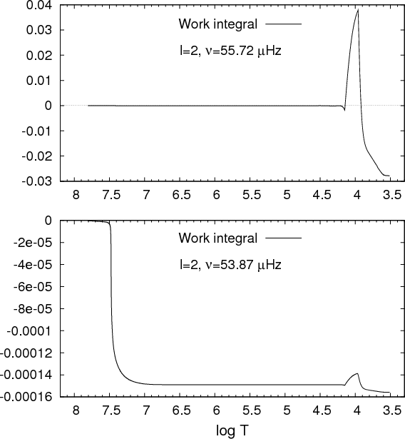 would give unstable modes in the considered range of frequencies, which is not realistic in view of the typical observed amplitudes of red giant high order p-modes.