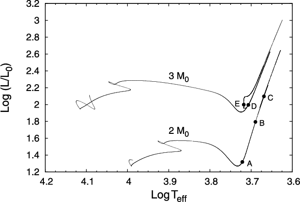 (see Ventura et al. 1998, for details), and for the chemical composition X=0.72 and Z=0.012. The radiative opacities are those from OPAL (Iglesias & Rogers 1996) for the