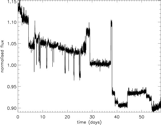 Figure 8: Typical light curve containing frequent jumps caused by ``hot pixels''. |