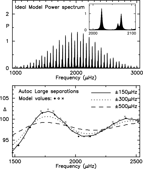 Results. Narrow-windowed autocorrelation of a time series can reveal the variation with frequency of the large separations