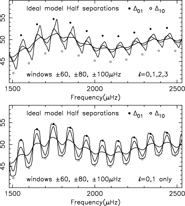 vary substantially with frequency a better test would be to use even narrower windows which give the half large separations