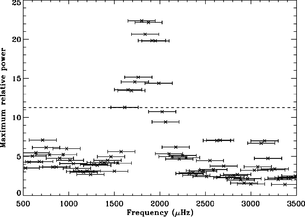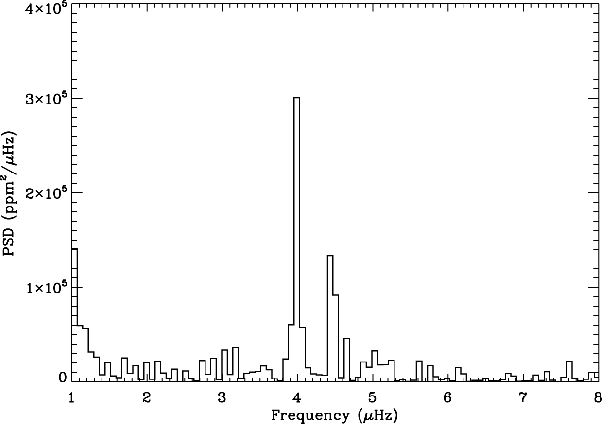 Hz. A more sophisticated treatment is necessary to clearly unveil the acoustic spectrum of this star.