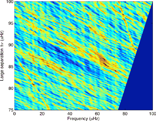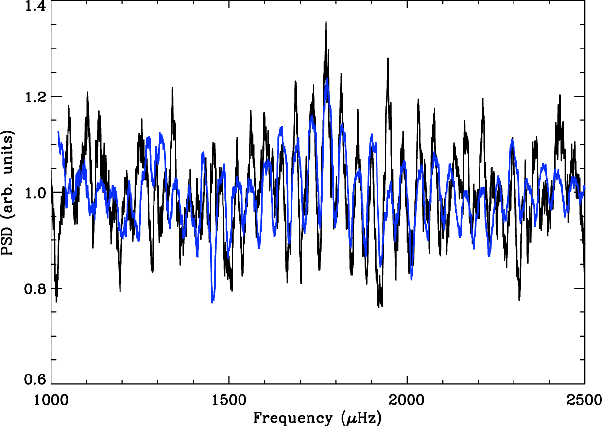 Hz measured inside this frequency interval. However, the low signal-to-noise ratio of the modes prevents us from unambiguously identifying them. To go any further, however, more a priori information is needed to constrain the fits.