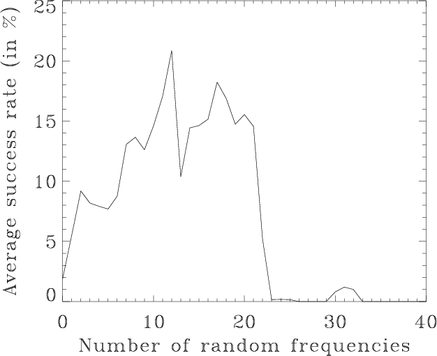the right panel of Fig. 4. The success rate has been calculated only using the modes which have been retained: rejecting non-random frequencies has not been penalised. As can be seen, having a comparable number of random