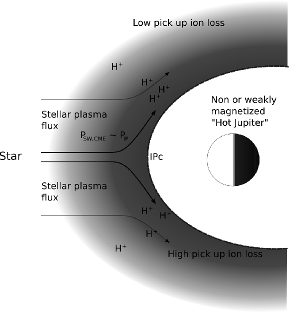 Figure 5: Illustration of the stellar plasma interaction with non- or weakly magnetized gas giants. |