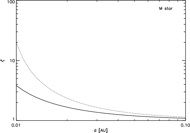 developed by Sheeley et al. (1997) on the basis of tracking several solar wind density enhancements at close distances (d < 0.1 AU). For the stellar wind speed, one can take in this formula v0 =300 km s-1, whereas for average and fast CMEs one can use v0 = 500 km s-1 and 800 km s-1. The decrease of the average CME plasma density