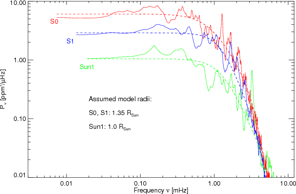 The paper is organized as follows: we briefly describe the photometric data (Sect. 2), and the hydrodynamical granulation models (Sect. 3), comment on how we derive the synthetic background spectra (Sect. 3.1), present comparisons for the Sun and HD 49933 (Sect. 4), and finish by discussing effects which may play a role in the encountered problems (Sects. 5 and 6).