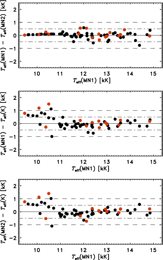 and Geneva photometry exceeded 1000 K, we adopted the average value from the two methods presented by Napiwotzki et al. (1993).