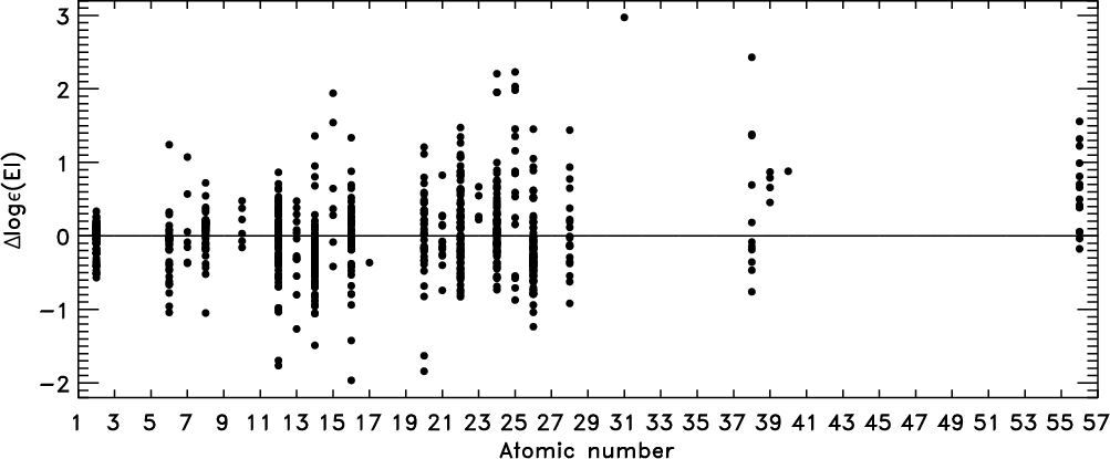 denotes the individual element. The first two parameters and the microturbulent velocity were not determined during the iteration process but were considered as input parameters. For the majority of stars,