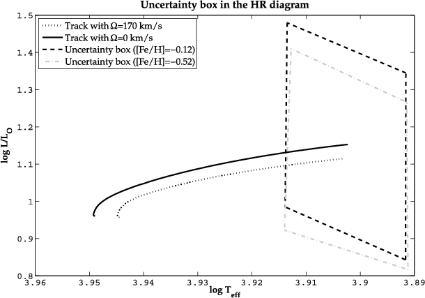 models that lie within the uncertainties of the physical parameters measured for this star. That is, we computed models to reproduce the HR locations corresponding to the four corners ()