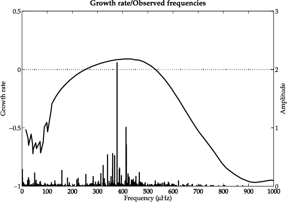 of the highest amplitudes in the frequency set, others do not. But not one of them gives the necessary instability range to represent the full range in the observations. It is assumed that observed frequencies ([0.5, 900]