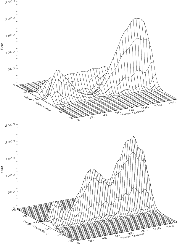 In addition, we have shown that a beating effect occurs between the two strongest frequencies (f1 and f2) with a period of about 14 days. A longer-term beating (116 days) is also observed.