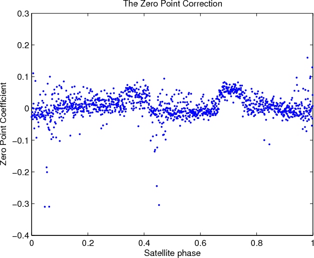 The two positive bumps seen in the figure occurred when the satellite was entering and exiting the Earth shadow, while thenegative outliers, at phase 0.05 and 0.45, coincided with crossing the South Atlantic Anomaly (see for example Auvergne et al. 2009). We also noticed an overall slight curvature over the whole phase, with a small displacement between the two bumps. The reason for this feature was not clear.