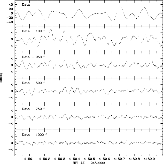 monitoring allow detection of amplitudes of about 10-5 mag without significant